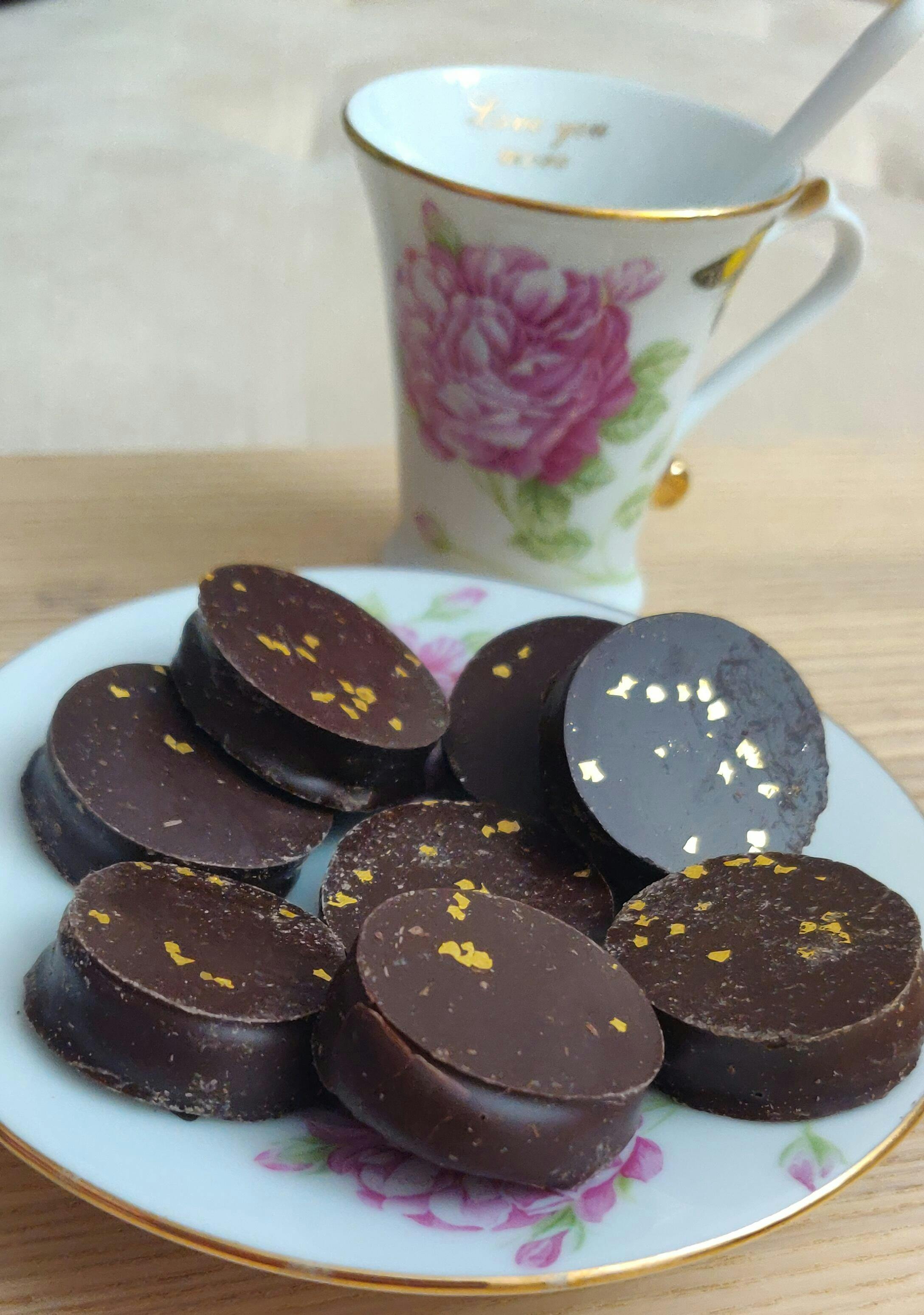 Authentic recipe with a 70% dark ganache made of great cocoas, crème fraîche fleurette from Normandy and adorned by hand with 23 carat gold leaf.